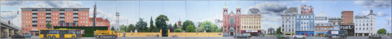 Det første du møder på udstillingen, er Allan Ottes 10 meter lange frisemaleri som han kalder et udtræk af Nørrebro. Med sin vanlige sikre gengivelse af omgivelserne på godt og ondt, opnår han at skildre Nørrebros diversitet i al sin overflod. Hans skarpe blik for detaljen og pågående farvevalg, slår tilskueren i møde. Intet bliver skånet. Du får klasket de barske realiteter i ansigtet, fra en bydel der i virkeligheden kunne ligge hvor som helst i verden.
