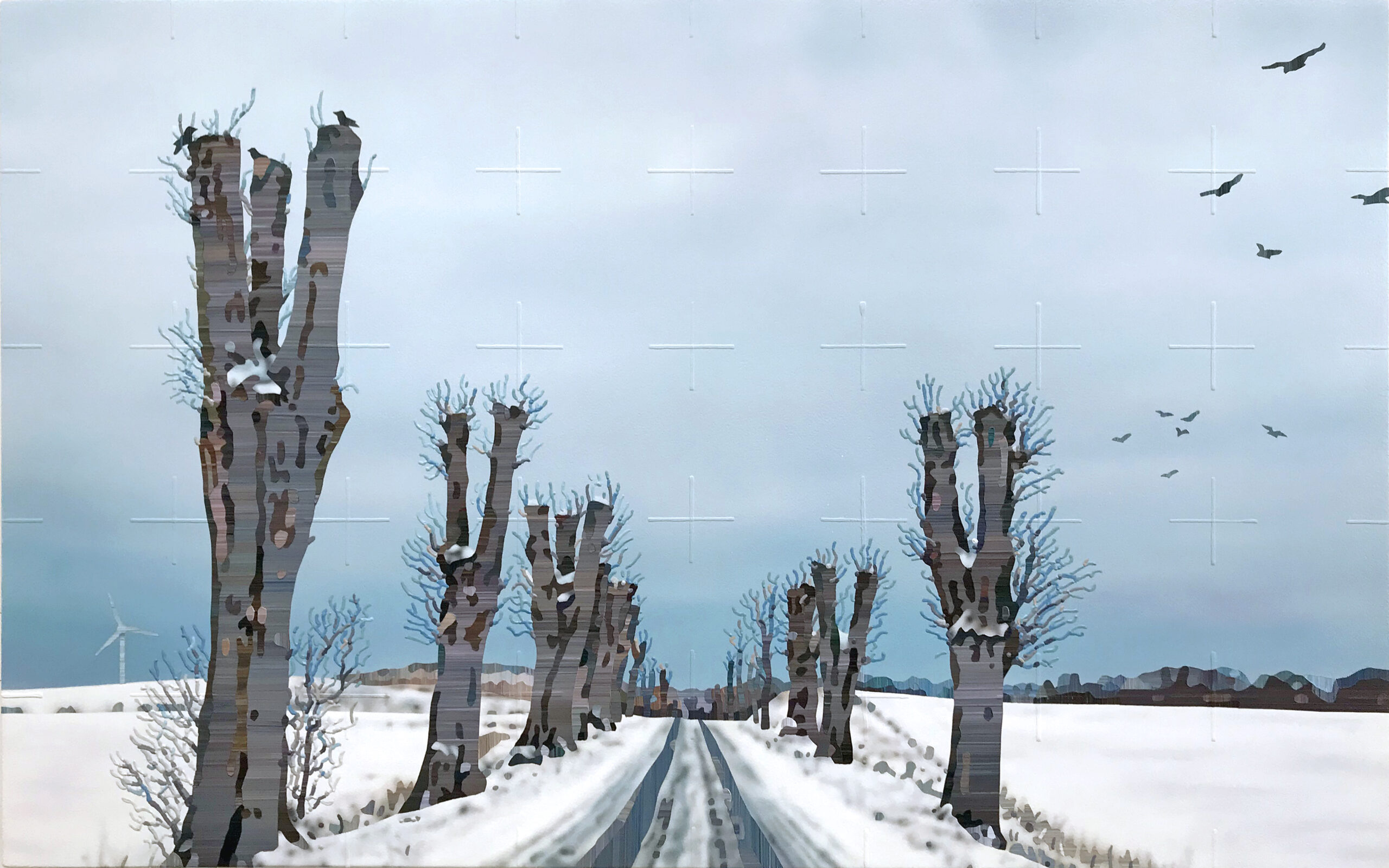 Ulrik bevæger sig fra de dystre grønlige farver over i stærke grønlige optimistiske farver, for igen at tage os til vandet med fugle der svømmer rundt i vandkanten. Her er der en tydelig tråd til hans inspiration hos fynbomalerne. Han er i de fleste af sine billeder tro mod sine rødder. I ’Homeland’ fra 2024, bliver du i klare indbydende farver inviteret på en soppetur.