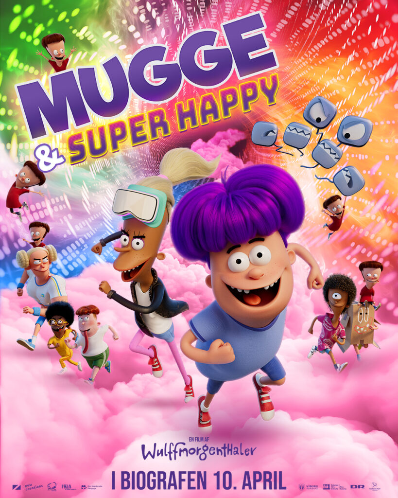 MUGGE OG SUPER HAPPY, er den tredje film om drengen Mugge som bor sammen med sine forældre på en helt almindelig villavej i Basserup. På vejen bor der en hel masser mennesker, som måske ikke er helt efter normen, men de er festlige. Wulffmorgenthaler, alias Mikael Wulff og Anders Morgenthaler, er dygtige til sætte fokus på ømtålelige emner på en let tilgængelig måde, uden det bliver pinligt for børnene. Tværtimod, de synes filmene er sjove og som min medanmelder Astrid på 5 år sagde om den sidste nye film MUGGE OG SUPER HAPPY : Det er næsten lidt for meget!!!! Altså, læs sjov!