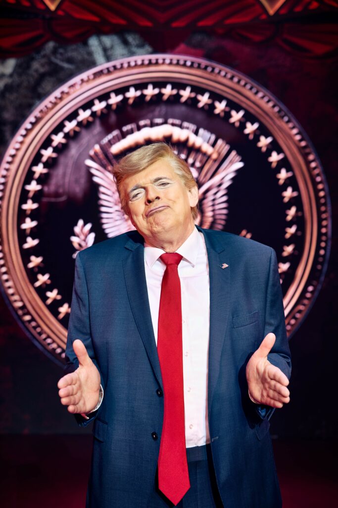 I anden akt er Trump kommet på besøg. Selvfølgelig skal han med i revyen og Niels både ligner og gebærder sig som ham, men lige her er Carl-Erik Sørensens tekst ikke i plet. Magnus har en monolog, hvor han er en mislykket aktivist. Han er usædvanlig god. I det hele taget er Magnus Haugård en gevinst for revyen.