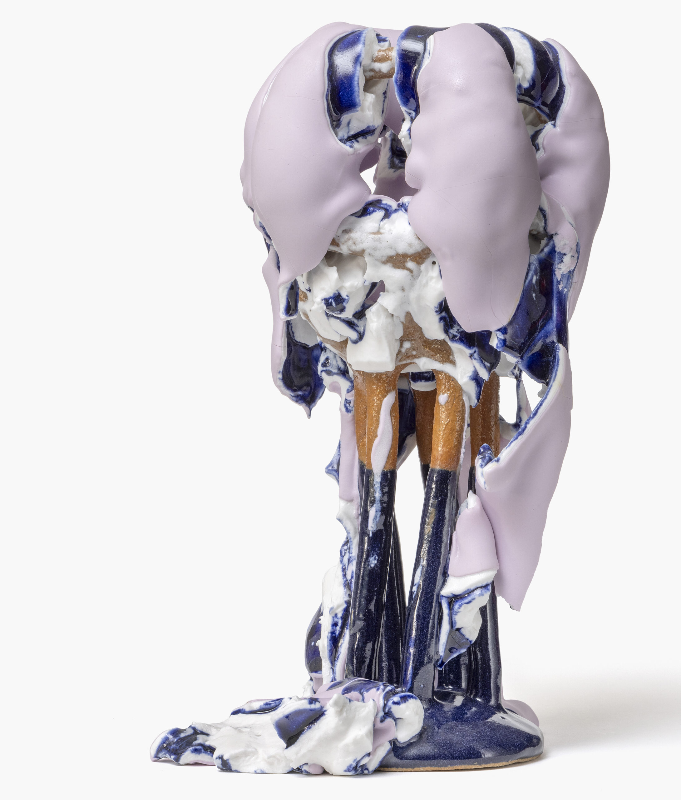 Skulpturen ”Purple exploded #1722” fra 2017 udgør en slags identitetsmarkør for udstillingen ”Natur og glasur”. Foto: Ole Akhøj