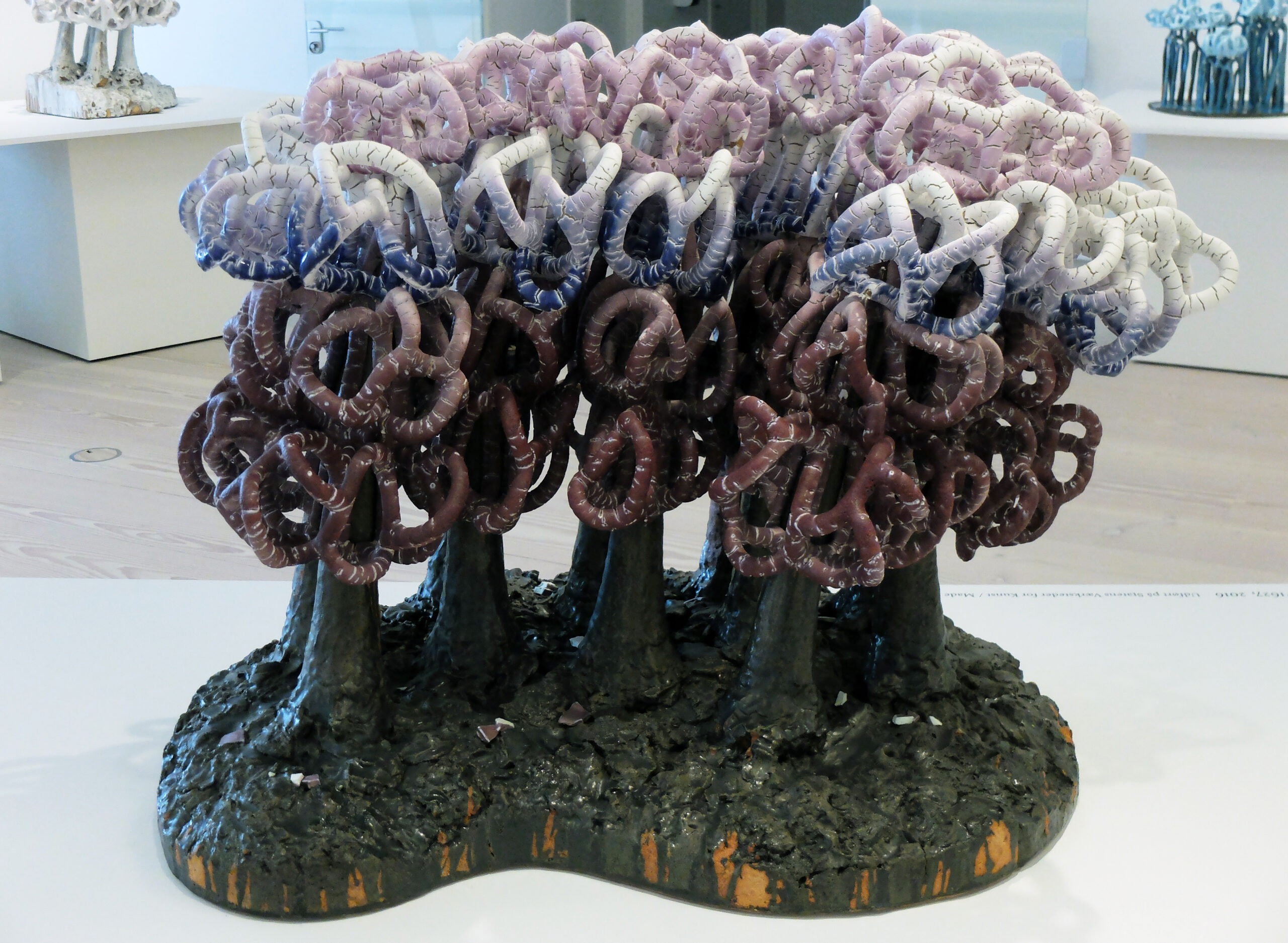 Jeg vælger i talrige tilfælde at se de keramiske arbejder som rendyrkede skulpturer og i en serie med titlen ”Forgreninger og kuber” fra 2003-2004 oplever jeg et vidnesbyrd om en kunstner, der skærer ind til benet og undersøger, hvad stentøjet er i stand til i en abstrakt version.