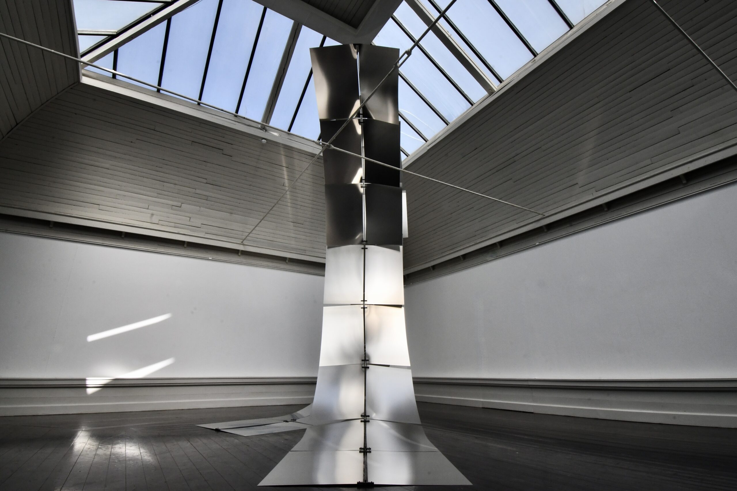 Den Frie: Sandra Mujinga – Coverfoto: And My Body Carried All of You set fra en anden vinkel. Man kan gå under skulpturen og rundt om den. Hver gang får man et nyt indtryk. Foto: Niels Lyksted.