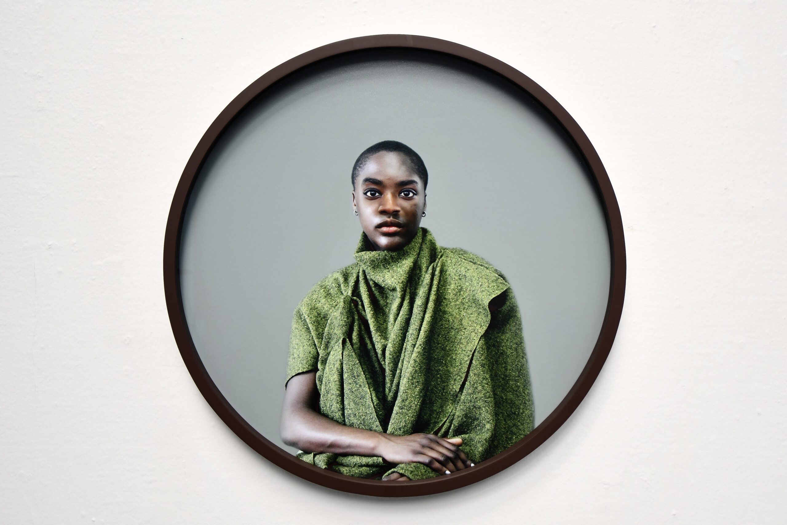 Shared Breath (1-6), 2024. Et af seks portrætter. Umiddelbart ligner portrætterne afbildninger af forskellige personer, men de er baseret på den samme model, hvis ansigtstræk dog er digitalt blandet med andres. Mujinga undersøger, hvordan man kan skjule sig fra konstant overvågning ved hjælp af deep-fake teknologier og bruge dem som en form for beskyttelse. Foto: Niels Lyksted.