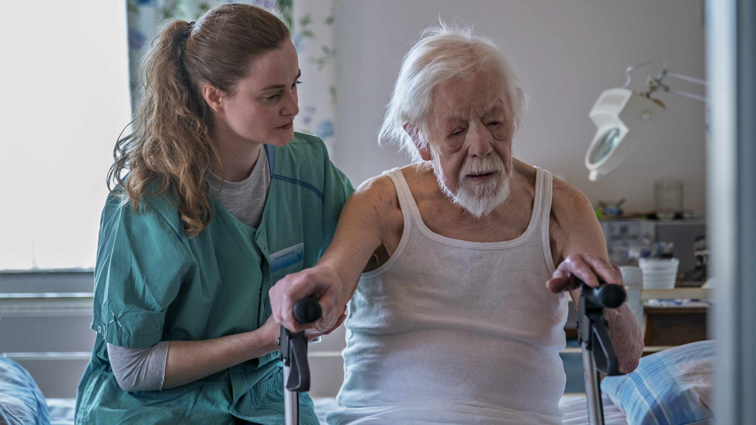 Frelle Petersen formår at skabe et drama omkring tissebleer, puslespil, kaffe, tidsplaner, mere bleskift, besparelser, karamelpapir, gymnastik, vagtskifte, øllebrød, stomiposer og – ikke mindst søde/sure ældre borgere og deres pårørende.