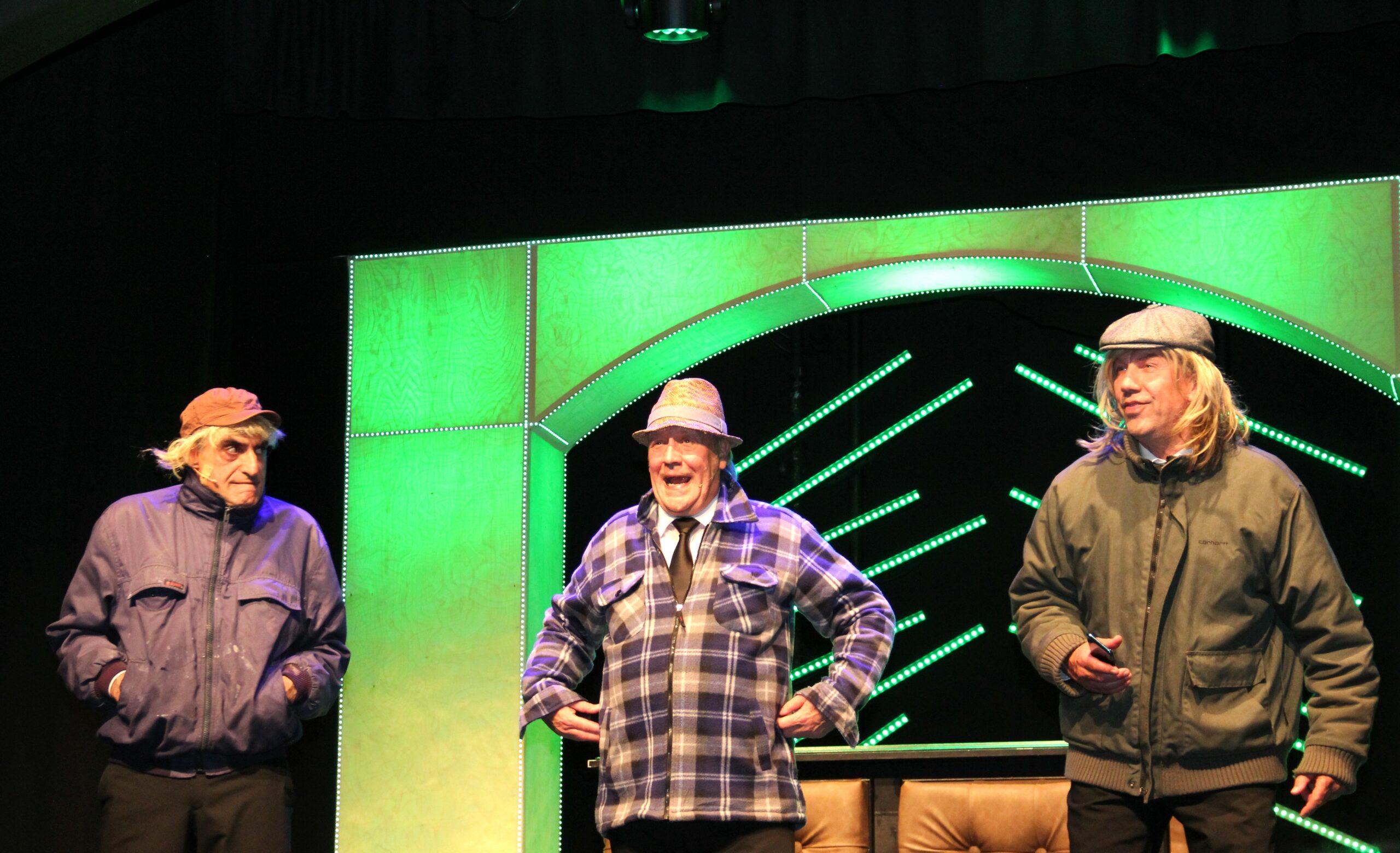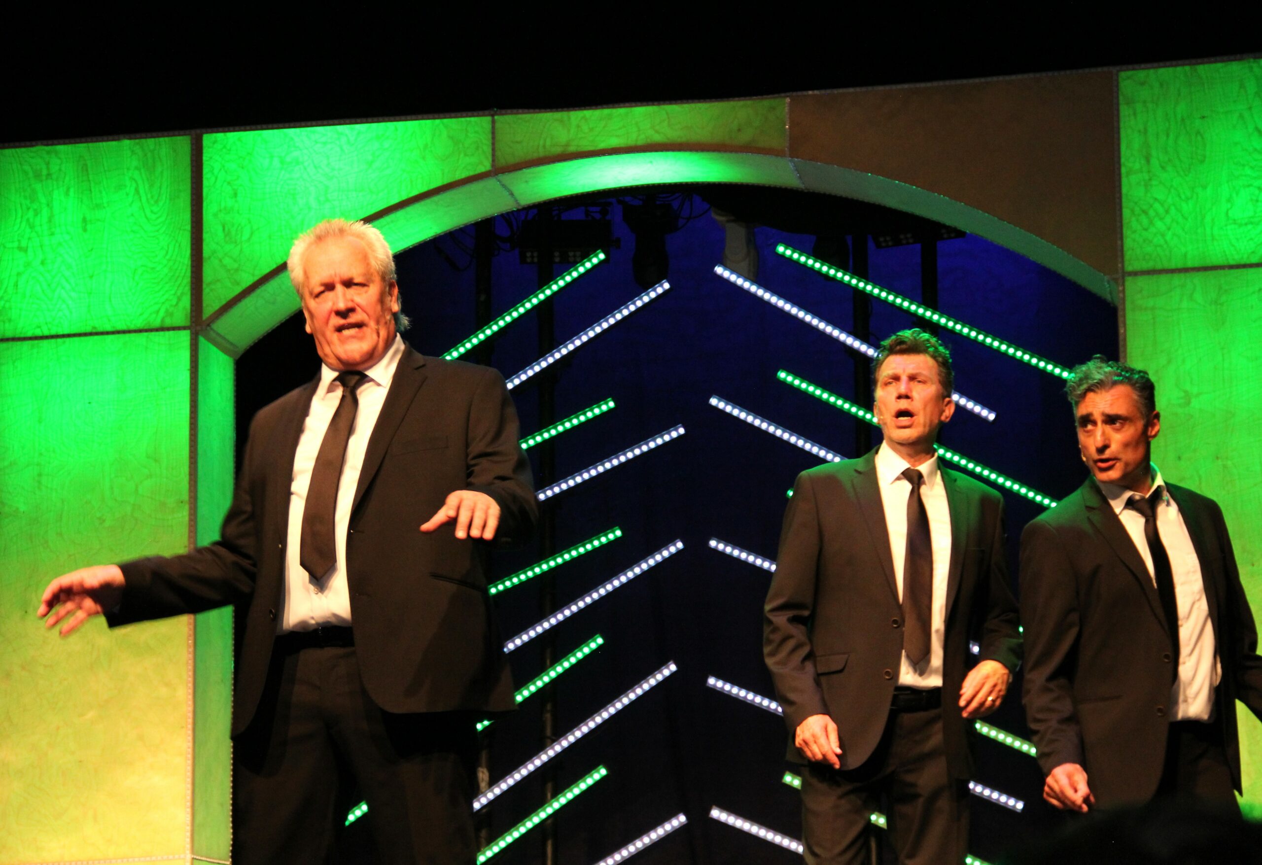 Trekløveret passer godt sammen. De klæder hinanden og man fornemmer tydeligt, at de kender hinanden godt. De er tre meget forskellige typer og det udnytter de til fulde i forestillingen. Desuden synger de alle glimrende, og stemmerne harmonerer. Forestillingen kører videre med nogle vandede vittigheder, men de går klokkeklart hjem. Hele holdet går i krig, og hvilken krig. Når nu forsvaret ikke har penge til våben, ammunition, køretøjer med mere, kan man jo altid få afløb for sin krigsentusiasme ved at lege røvere og soldater. ’Drengene’ er morsomme og alle kneb gælder og bliver taget i brug. Tekst Isabel Arnold og Fabritius og Engholm.