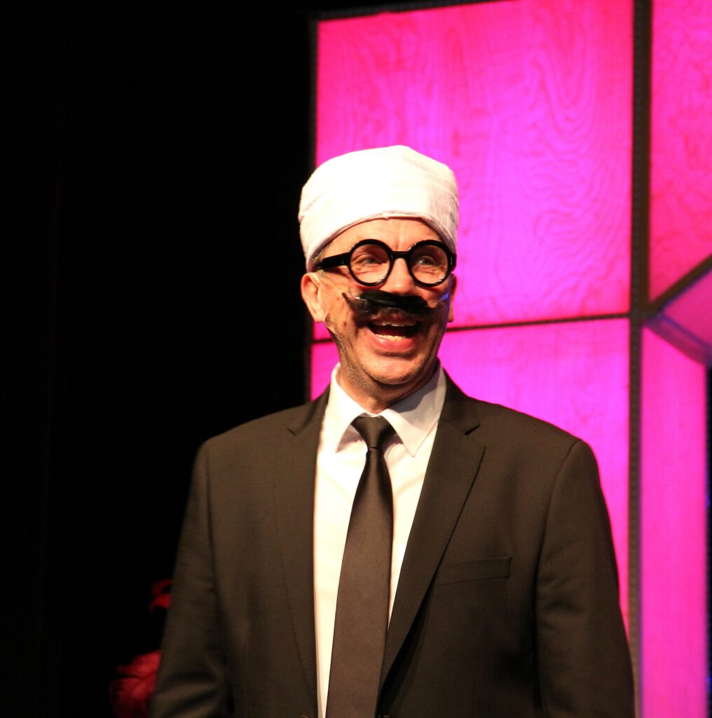 Ind træder René i en guldkappe. Vi har fået besøg af aftenens store magiker, Magic Ib. Hans navn er egentlig John Sørensen, men det fængede ikke rigtigt! Magic Ib får to frivillige på scenen, Jesper og Farshad, og så starter magien! De to ’ofre’ bliver hypnotiseret og jeg kan allerede nu afsløre at nummeret er et af revyens bedste. Magic Ib demonstrerer det gamle tankelæser trick, som var de kendte Truxa og Gurli´s speciale. I dette nummer viser René virkelig sit komiske talent. Teksten har René selv skrevet og den har ramt plet. Og er hamrende morsom.