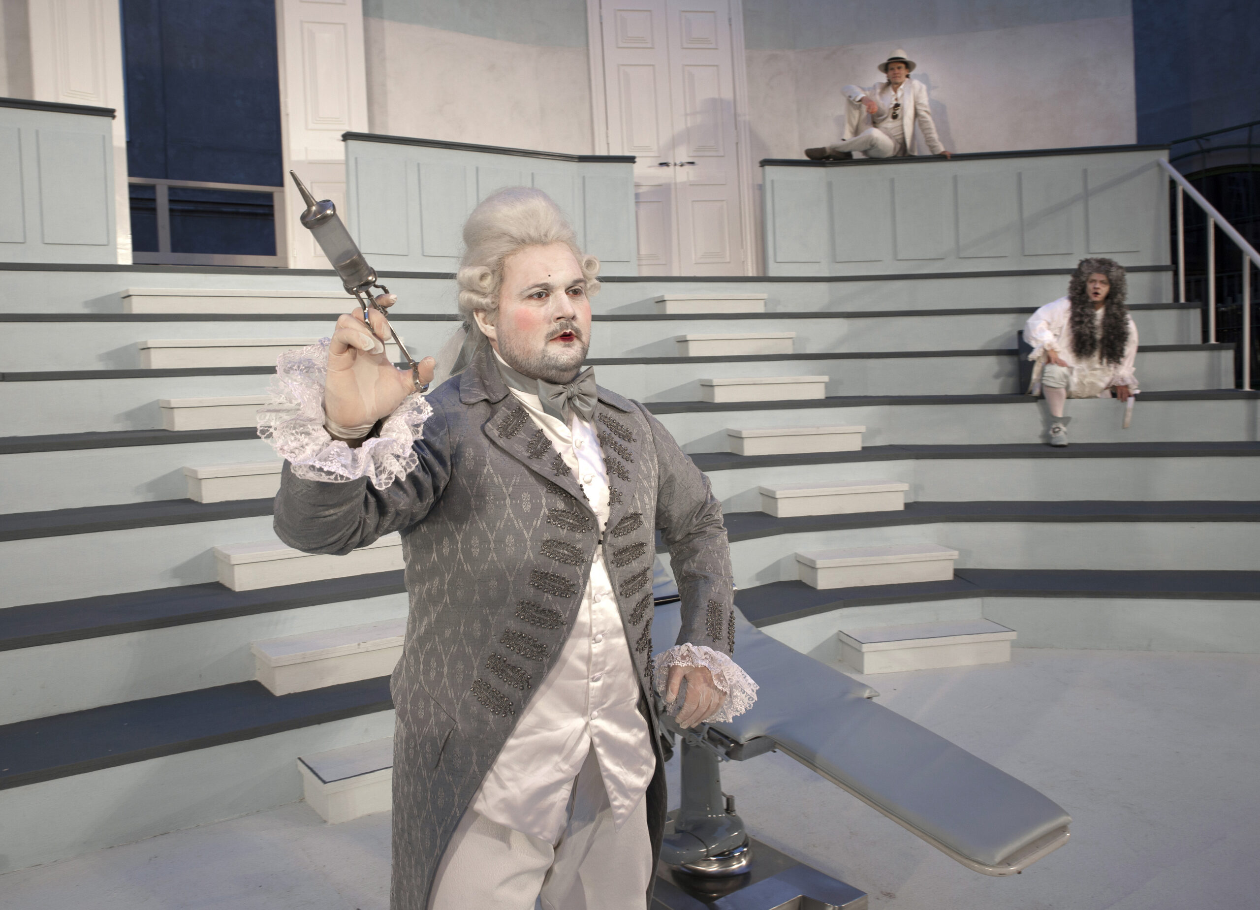 Monsieur Argan får den geniale idé, at hvis hans datter, Angelique (Andrea Øst Birkkjær), bliver gift med hans læges søn, Thomas Diaforius (Nicolai Jørgensen), vil han altid have en læge ved sin side.