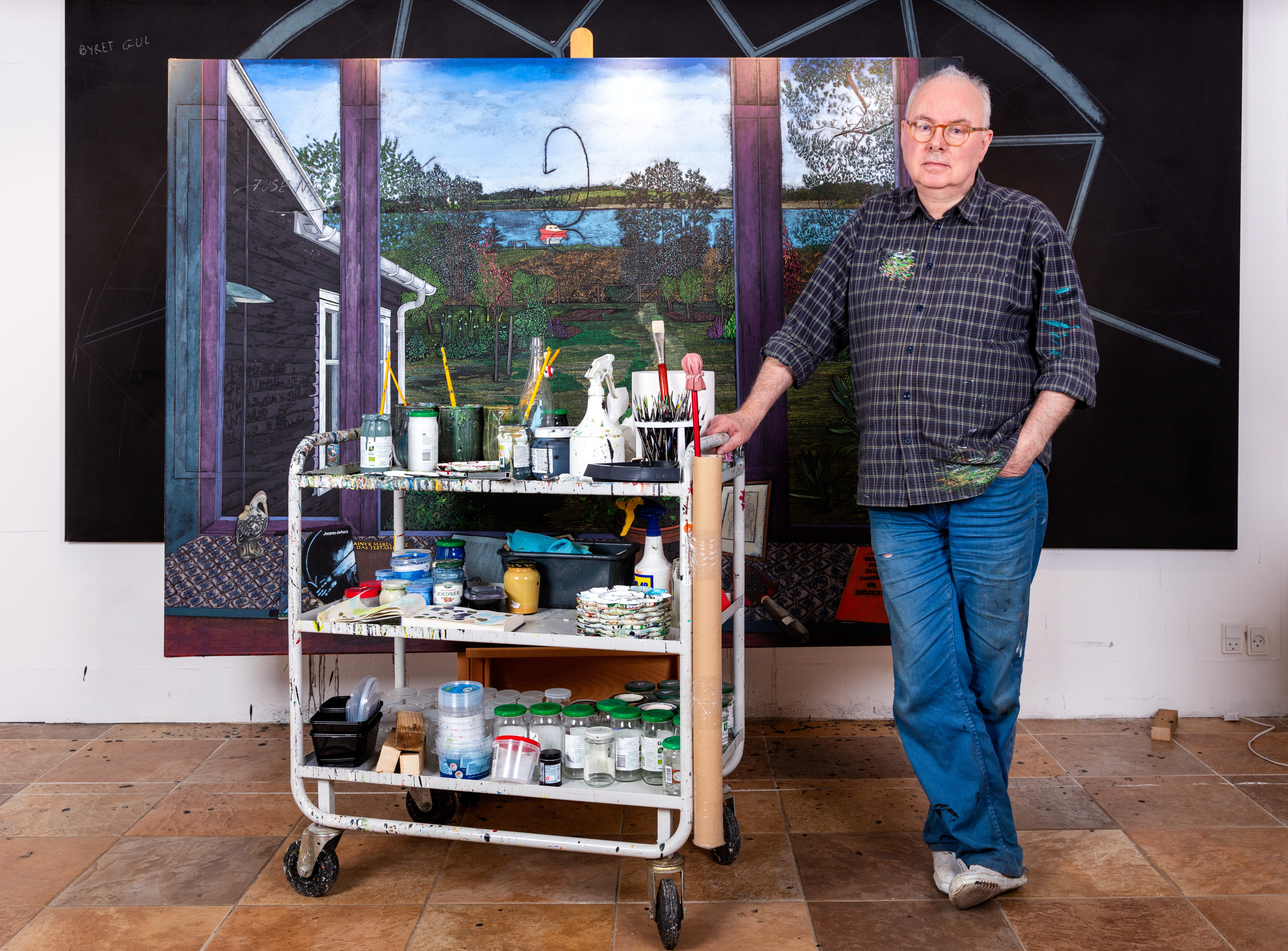 Men sådan ser der bestemt ikke ud i den danske maler og grafiker Jesper Christiansens atelier. Det ligner mere et apotek end en rigtig kunstners værksted. Pensler, tuber med maling og papir er nøje sorteret efter størrelse og opbevares systematisk. Derfor kalder han sig ikke billedkunstner, men foretrækker den klassiske betegnelse kunstmaler.
