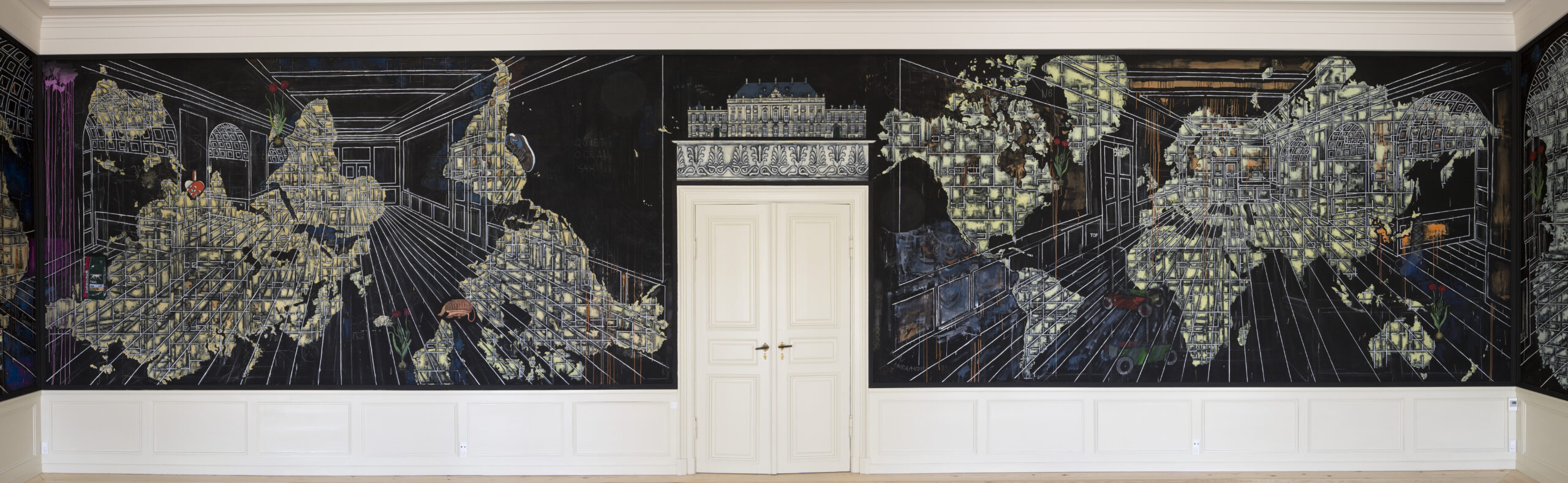 Jesper Christiansen, det lange vægmaleri med verdenskort i vestibulen på Frederik VIII’s Palæ, 2010/Foto: Torben Eskerod