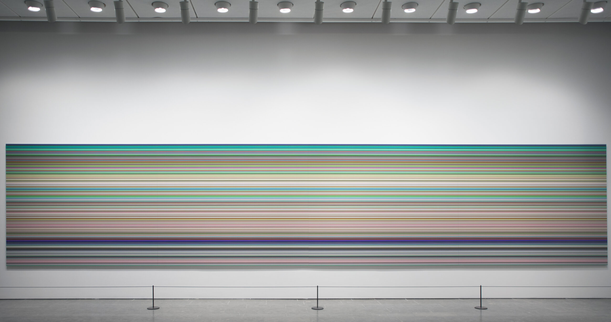 ”(Un)real”: Gerhard Richters striber så at sige ”flyder” på tværs af en 10 meter lang grund af papir monteret på miksede materialer. Foto: Niels Fabæk