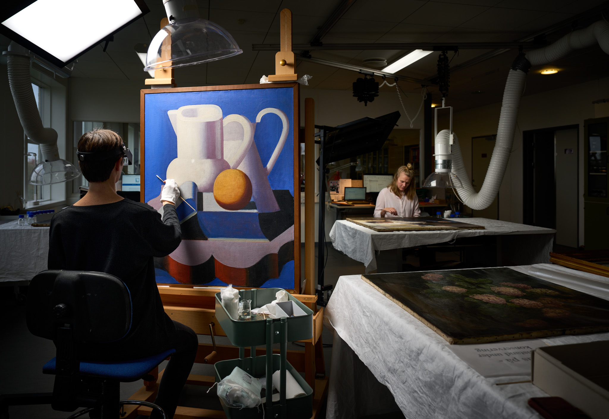 En anden spændende opdagelse er fra værket ’Opstilling med kander’ fra 1930-32, som i udstillingen kan opleves med den ene halvdel nyrenset, og den anden del dækket af et tyndt lag sod/snavs, som museet først opdagede for nylig. Det giver den besøgende en fin mulighed for at se ind bag både konservatorens og kunstnerens arbejdsmetode.