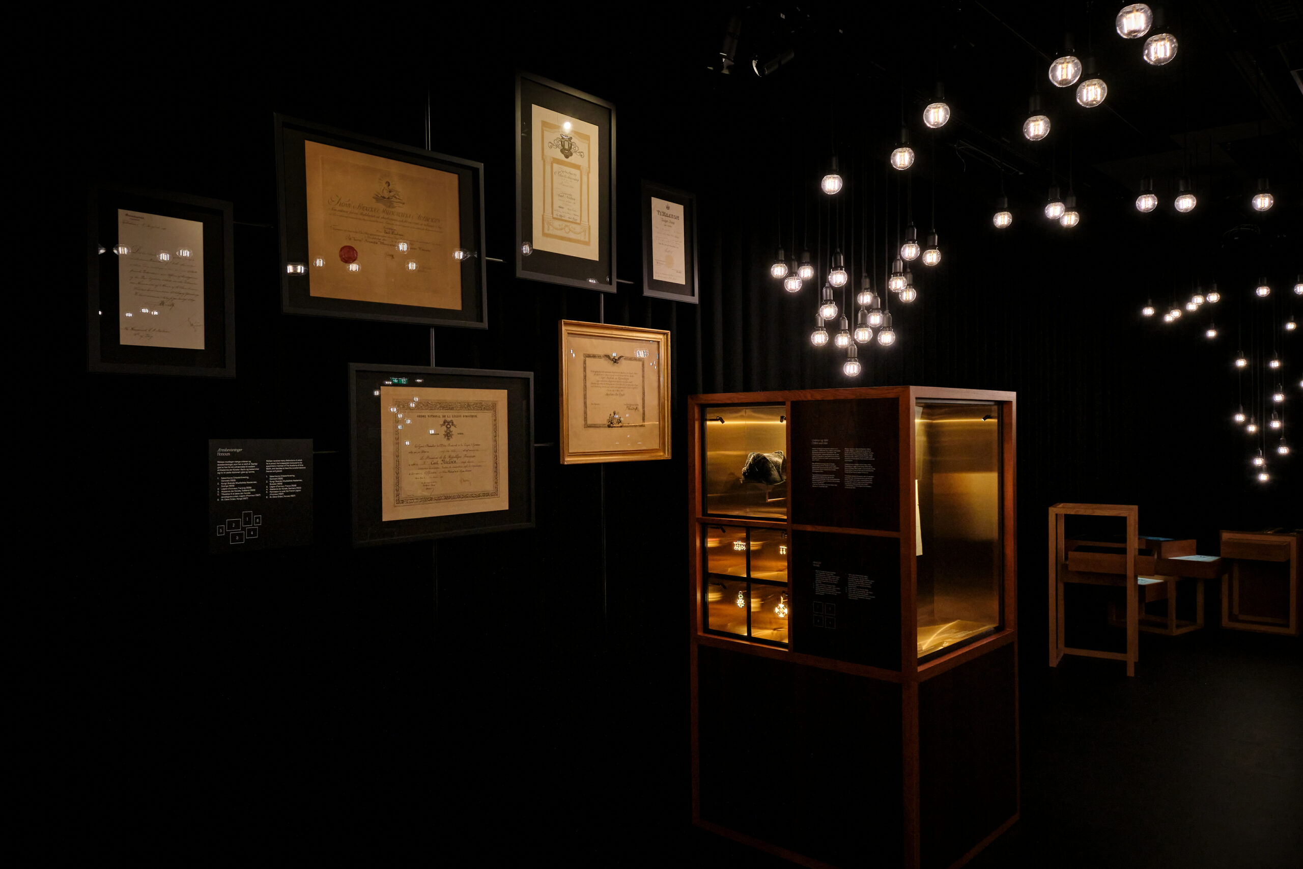 Når du træder ind i museets første rum, vises en film. Lys og lyd betød en del for Nielsen og i filmen akkompagnerer ’musikalske lysglimt’ musikken. Lyden er på hele udstillingen strålende. Du kan ikke undgå at blive opslugt af Carl Nielsens musikalske univers. Museet er draperet med sorte lydabsorberende gardiner, der tilmed giver et stiligt indtryk.