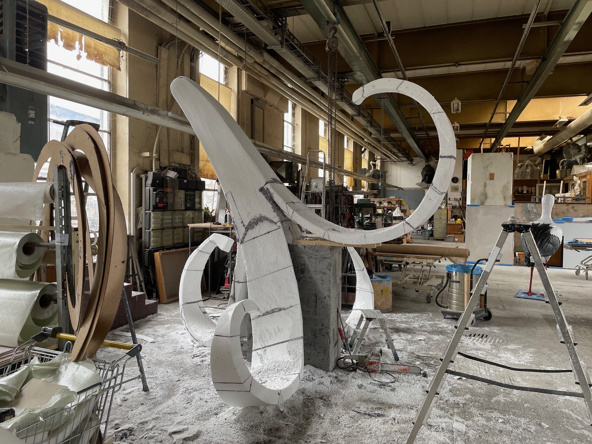 Djurberg & Berg 2025. THE CIRCLE OF LIFE in progress. Materialerne i værket er glasfiber, harpiks, metal, styroskum og træ