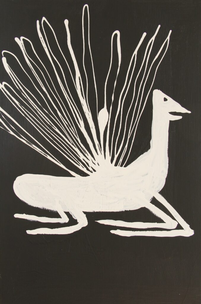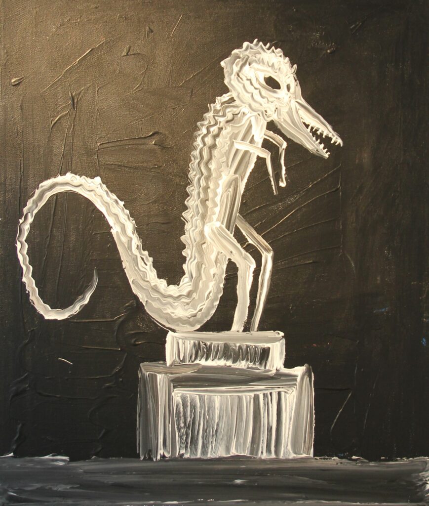 På første salen er der en særudstilling af Frederik Næblerød, 1988-, og Casper Aguila: ’Timeline’. Særudstillingen er i sort/hvid. En skarp kontrast til samtidskunsten i dag. Kunsten og verden er i farver, bare ikke i denne udstilling. Det må siges at udstillingen er meget anderledes. Den er rå og pågående. Måske med lige lovlig meget agressivitet. Facaden af den smukke hvide bygning, er blevet bemalet med Næblerøds karakteristiske insekt/fantasifigurer og malingen fra de sorte nærmest uhyggelige ’ting’, er sprøjtet ned på græs, sten, vinduer, alt der har været inden for rækkevidde. Jeg vil lade det være op til beskueren at bedømme udsmykningen. Næblerød og Aguilas har været en slags provokunstenere i området.