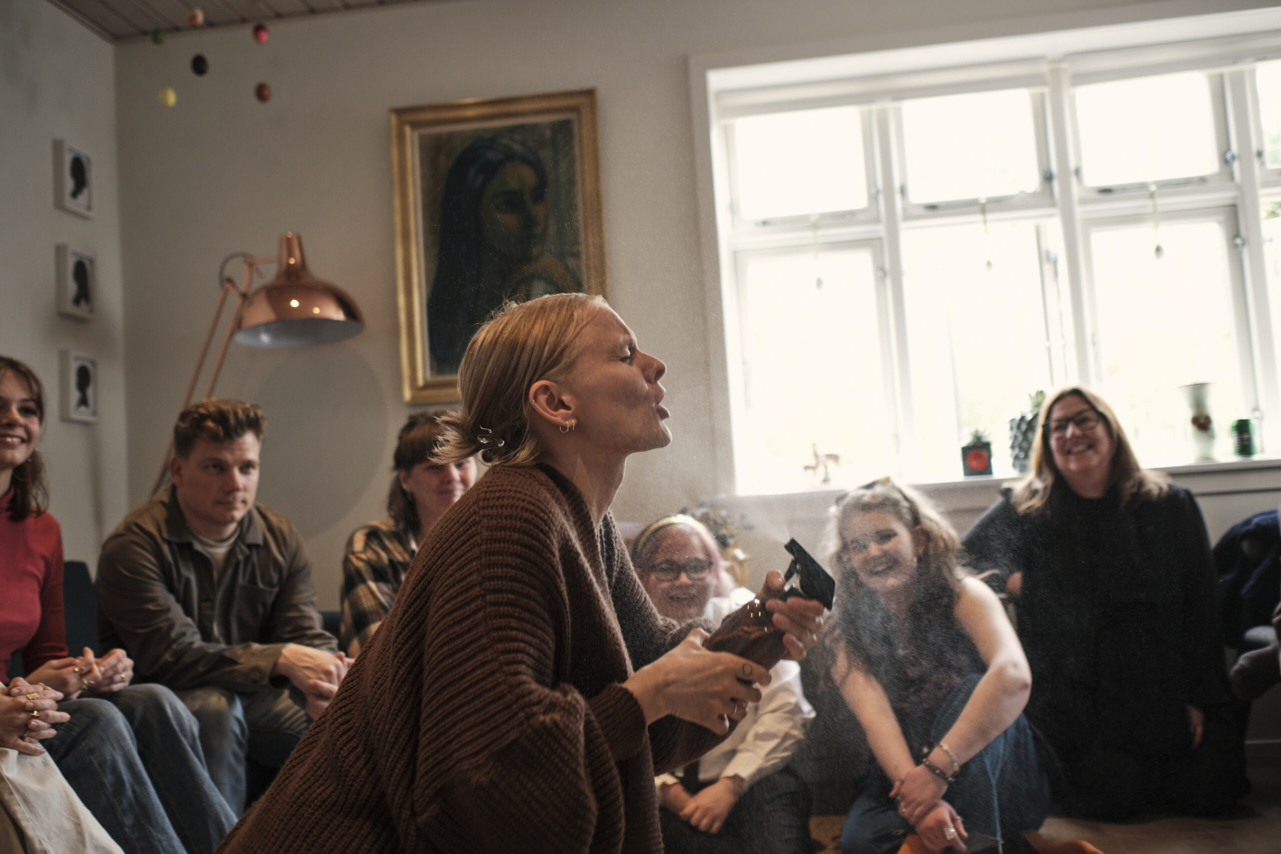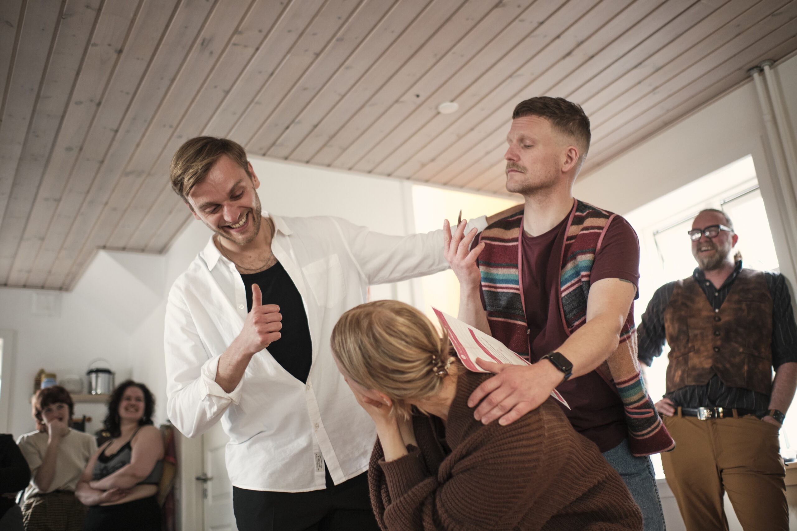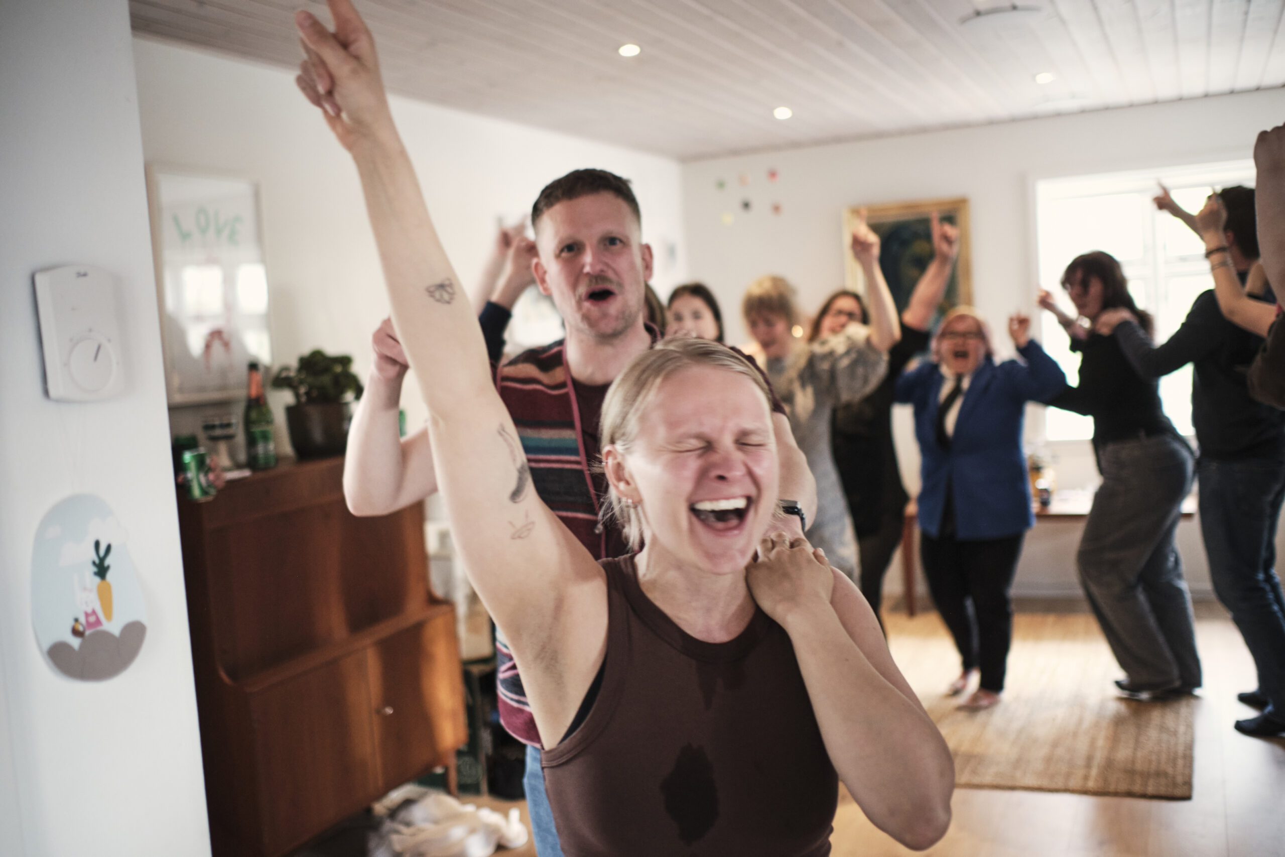 Når det foregår i en lejlighed, kan der selvfølgelig heller ikke være ret mange publikummer. Faktisk kun 20 til hvert stykke. Så vi blev en del af et minimalistisk totalteater. For de tre skuespillere skulle oveni samtidigt være lydfolk og regissører. Hvilket de klarede brilIant. For samtidig med at de havde Ibsens stykke at spille, skete der samtidig flere ting, som gjorde at de skulle improvisere en del. Hvilket lykkedes helt perfekt og gav os publikummer en hel del gode grin, men samtidig rørende øjeblikke og refleksion på, hvad et godt parforhold indeholder og indebærer.